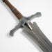 Bring the world of Elden Ring to life with this decorative 1035 carbon steel replica of the Knight’s Greatsword. Measuring 108 cm in length, this meticulously crafted blade features a tapered edge that is sharp, though it is classified as blunt because the 1035 carbon steel material is not intended for functional use. Complete with a leather sheath and removable belt strap, this striking replica is ideal for cosplay, themed photoshoots, or as a display piece, offering collectors and fans an authentic and impressive addition to their collection—handle with care.