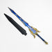 Wield the power of Mondstadt’s ancient legacy with this decorative real blunt 1035 carbon steel replica of the Song of Broken Pines Sword from Genshin Impact. Measuring 110cm in length, this stunning replica captures the intricate golden accents and regal blue design of the in-game claymore, making it a true collector’s piece. The sword comes with a custom faux leather sheath that stops at the ornate gold base, showcasing the elaborate hilt while keeping the blade protected. Perfect for display, cosplay, or photoshoots, this Song of Broken Pines replica is a must-have for Genshin Impact fans looking to bring the grandeur of Dragonspine’s legendary weapon into their collection.