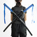 Unleash your inner leader with this decorative real sharp carbon steel replica of Leonardo's Katanas from Teenage Mutant Ninja Turtles. Sold as a pair, each katana measures 105 cm in length and features a bold blue handle wrap, true to Leonardo’s iconic color. The blades are crafted from 1060 carbon steel for a realistic edge and finish, ideal for display, cosplay, or photoshoots. Each sword features a unique turtle shell guard—one black and one grey—adding a distinctive touch inspired by the TMNT universe. The set includes a faux leather lace-up backstrap with adjustable nylon straps for secure and stylish carrying.