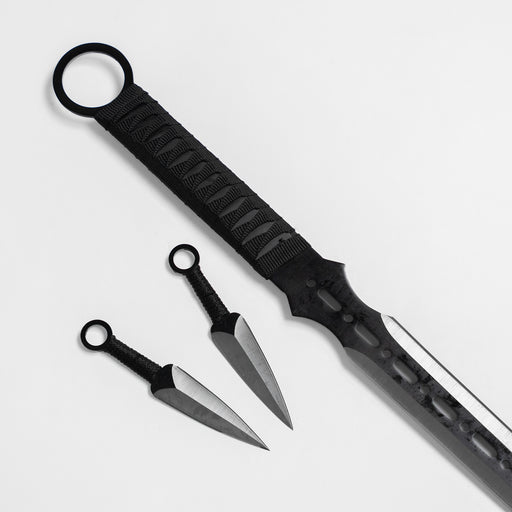Fire and Steel - Beginner's Ninjato with Throwing Knife Set (Battle Ready)