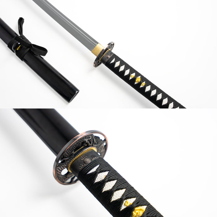 This sword features a zinc alloy tsuba and comes with a finely crafted wooden sheath, combining elegance with practicality. Customers can choose between two versions to suit their preferences: