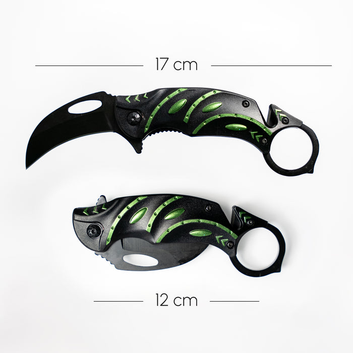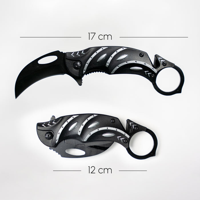 The Fire and Steel Talon Folding Knife is a sleek and fully functional pocket knife, featuring a sharp, hawkbill-style blade that resembles a talon, perfect for precision cutting and everyday tasks. Crafted from durable stainless steel, this 17 cm knife locks securely when open and folds to a compact 12 cm for easy carrying. It comes equipped with a sturdy metal belt clip, ensuring convenience and portability. With its karambit-inspired design and practical utility, the Fire and Steel Talon is both a functional tool and an eye-catching collectible.